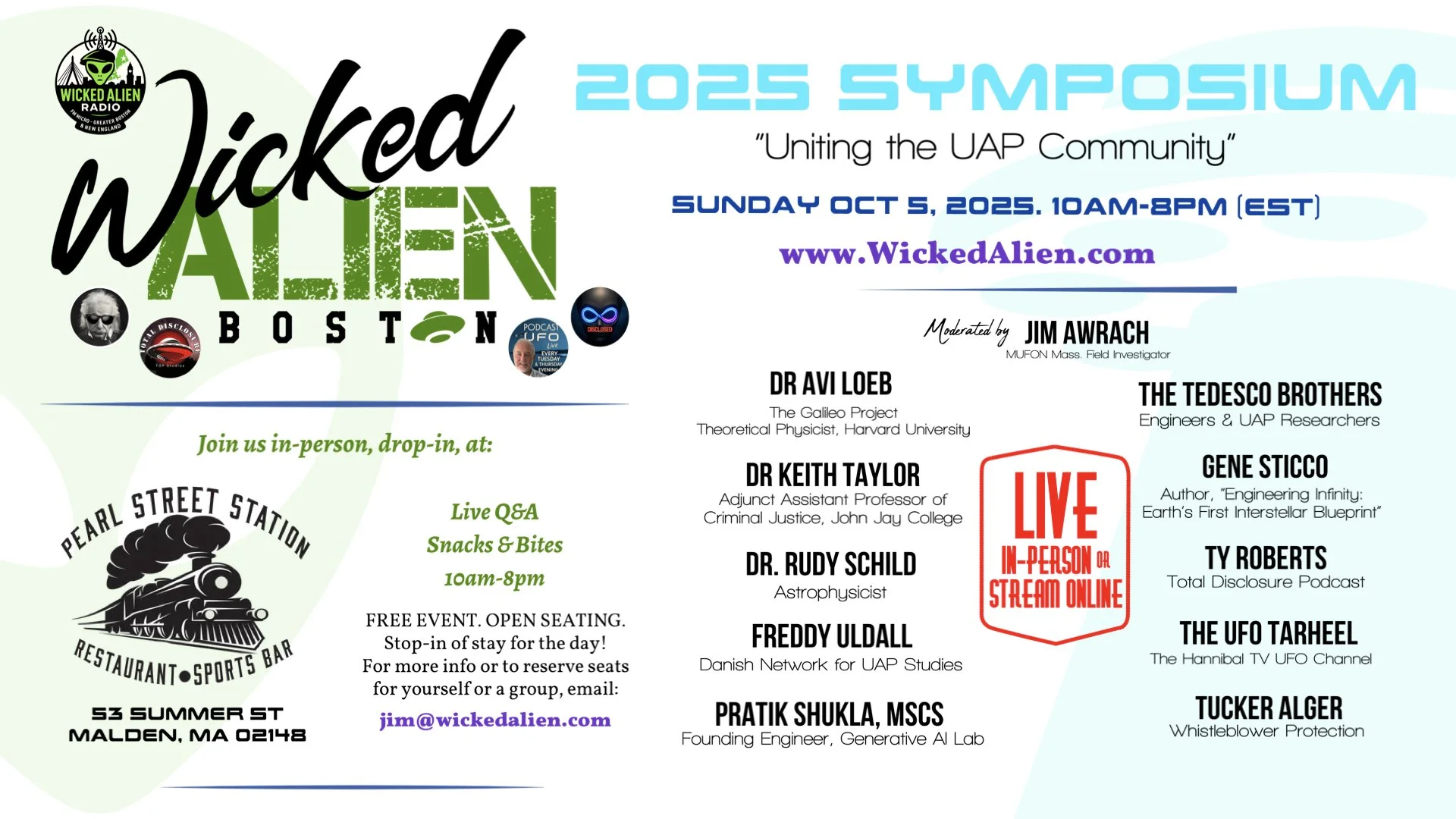 Wicked Alien Radio is a collaborative station powered by New England’s UFO, UAP, and paranormal broadcasters. Together, we bring you a mix of live shows, expert interviews, pre-recorded episodes, roundtable discussions, and open phone lines where listeners can share their own stories. We take the mysteries seriously — but we also know how to have a laugh and keep things fun along the way.